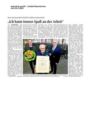 Goldener Meisterbrief für Heinz Krehenwinkel